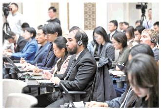 圖為10月24日,中外記者參加介紹和解讀中共二十屆四中全會精神新聞發(fā)布會。 新華社發(fā)