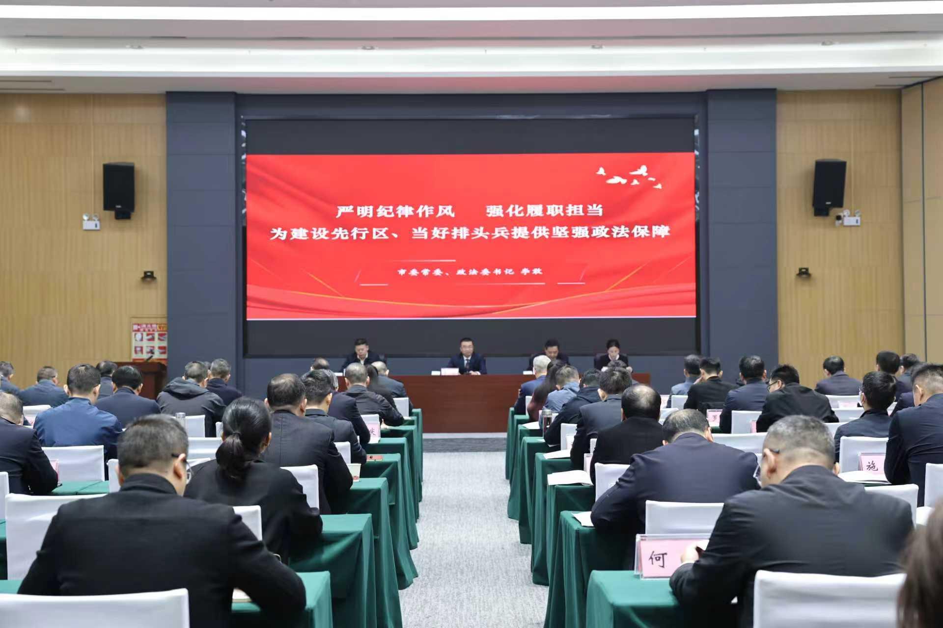 李敢強(qiáng)調(diào),要深入學(xué)習(xí)貫徹習(xí)近平總書記關(guān)于黨的自我革命的重要思想、關(guān)于加強(qiáng)黨的作風(fēng)建設(shè)的重要論述,持續(xù)鞏固深化學(xué)習(xí)教育成果,不斷提升履職能力水平。要切實(shí)增強(qiáng)抓紀(jì)律作風(fēng)的思想自覺(jué)、行動(dòng)自覺(jué),堅(jiān)持抓領(lǐng)導(dǎo)干部這一“關(guān)鍵少數(shù)”,堅(jiān)持黨性黨風(fēng)黨紀(jì)一起抓,堅(jiān)持一體推進(jìn)學(xué)查改,以優(yōu)良紀(jì)律作風(fēng)推動(dòng)擔(dān)當(dāng)作為,持續(xù)加強(qiáng)政法隊(duì)伍建設(shè),為建設(shè)先行區(qū)、當(dāng)好排頭兵貢獻(xiàn)政法力量。