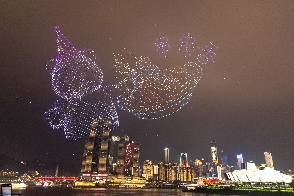 2025年10月2日晚在重慶市南岸區(qū)南濱路拍攝的無人機燈光秀。國慶假期,重慶憑借立體的城市景觀、豐富的旅游業(yè)態(tài)以及不斷創(chuàng)新的消費場景等,吸引游客前來旅游、體驗,假期消費市場活力十足。自2025年4月19日起,重慶在每周六和重大節(jié)假日開展無人機燈光秀常態(tài)化展演,為了常演常新,創(chuàng)作團隊根據(jù)節(jié)點設(shè)計無人機圖案,不斷推出文旅、美食、非遺等系列題材。截至2025年9月17日,無人機燈光秀已演出26場,現(xiàn)場累計觀演人次超400萬。展演期間,核心觀演區(qū)沿線餐飲門店座無虛席,平均滿客率超70%,“重慶無人機表演餐廳”網(wǎng)絡(luò)搜索量同比上漲285%。