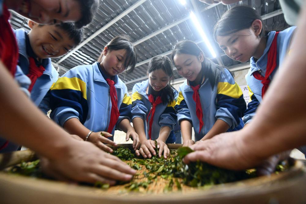 2024年12月3日,學(xué)生們在廣西梧州市蒼梧縣六堡鎮(zhèn)塘平小學(xué)學(xué)習(xí)制作六堡茶。廣西六堡茶已有1500多年的歷史,其制作工藝被列入第四批國家級非物質(zhì)文化遺產(chǎn)代表性項目名錄。近年來,廣西圍繞打造千億元茶產(chǎn)業(yè)發(fā)展目標,深入實施綠色高效茶園建設(shè)、品牌提升和營銷體系建設(shè)、產(chǎn)業(yè)融合和茶文化提升等多項工程,形成了以六堡茶為引擎,早春茶等特色優(yōu)勢茶協(xié)同發(fā)展的產(chǎn)業(yè)格局,茶產(chǎn)業(yè)煥發(fā)勃勃生機。六堡茶正沿21世紀海上絲綢之路運達八方,香飄海內(nèi)外。2024年,廣西六堡茶產(chǎn)量達到4.3萬噸,綜合產(chǎn)值超300億元。
