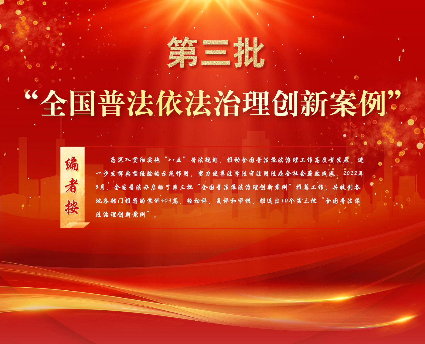 4月21日,全國普法辦公布第三批“全國普法依法治理創(chuàng)新案例”。記者獲悉,為鼓勵地方和基層聚焦問題開展差異化探索,選樹各地各部門在普法依法治理工作中創(chuàng)造的好經(jīng)驗好做法,2022年8月,全國普法辦啟動了第三批“全國普法依法治理創(chuàng)新案例”推薦工作 ……【詳細(xì)】