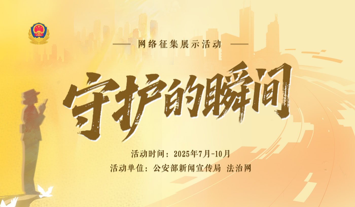 由公安部新聞宣傳局、法治網(wǎng)聯(lián)合開展的“守護的瞬間”網(wǎng)絡征集展示活動于7月3日啟動,面向全社會征集公安機關忠誠履職盡責、熱忱為民服務、規(guī)范文明執(zhí)法和打擊違法犯罪的感人瞬間...【詳情】