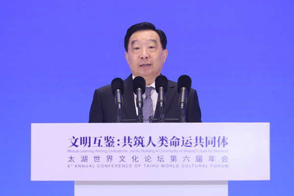 王晨表示,太湖世界文化論壇是中國創(chuàng)立的高層次國際文化論壇,要發(fā)揮好促進(jìn)不同文明互學(xué)互鑒重要平臺作用,為加強(qiáng)世界文化交流和文明互鑒,促進(jìn)和諧共生,共繪美美與共的文明畫卷作出貢獻(xiàn)。