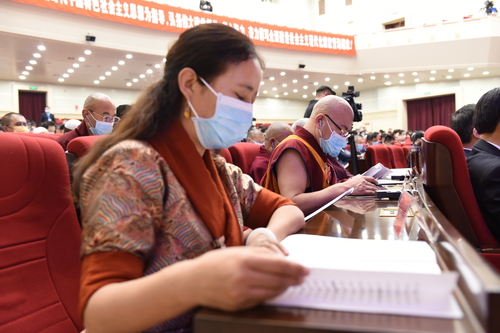 1月20日上午9時,青海省政協(xié)十二屆五次會議在青海會議中心開幕。以本民族傳統(tǒng)服飾亮相的少數(shù)民族委員,無疑成為了一道最亮麗的風景。 肖芳 攝