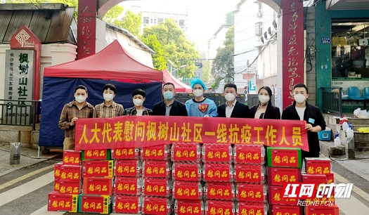 4月6日下午,長(zhǎng)沙市人大代表聶志強(qiáng)(右三)和其他幾位代表在雨花區(qū)東塘街道楓樹(shù)山社區(qū)開(kāi)展慰問(wèn)。