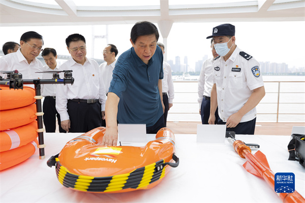 6月30日至7月4日,中共中央政治局常委、全國(guó)人大常委會(huì)委員長(zhǎng)栗戰(zhàn)書(shū)率全國(guó)人大常委會(huì)執(zhí)法檢查組在湖北檢查長(zhǎng)江保護(hù)法實(shí)施情況。這是7月3日,栗戰(zhàn)書(shū)在漢口江灘碼頭考察長(zhǎng)江大保護(hù)工作情況。新華社記者?黃敬文?攝