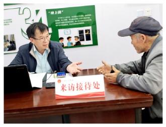 殷勇代表(左)在工作室接待來(lái)訪(fǎng)群眾。