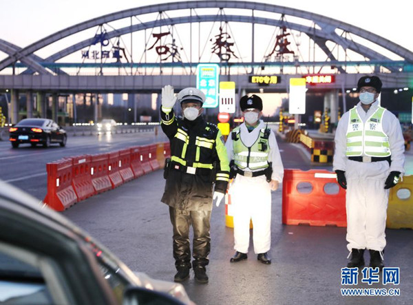 1月10日,石家莊市公安局高新技術產業(yè)開發(fā)區(qū)公安分局民警在藁城區(qū)通往市區(qū)的路口執(zhí)勤?!?/span>