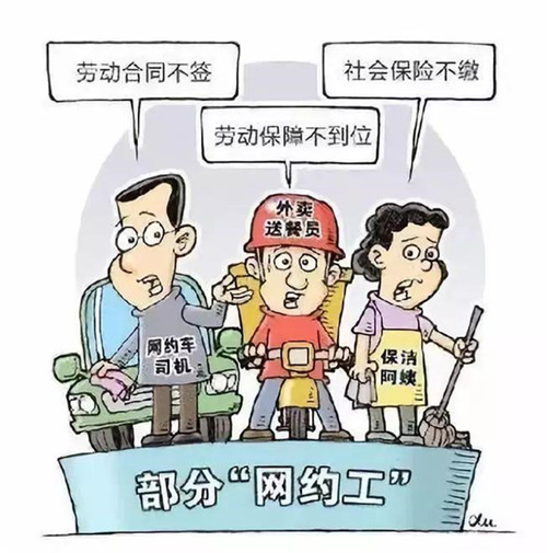 “網(wǎng)約工”打破了原來的“公司+員工”的模式,變成“平臺+個人”,大部分“網(wǎng)約工”以靈活、彈性、平臺、共享等就業(yè)形式存在,他們與互聯(lián)網(wǎng)平臺的法律關系較難界定。一些不具備法定意義上的勞動合同關系,如一些網(wǎng)約平臺上的快遞騎手,當中有相當一部分人員是以“兼職”的身份存在于“網(wǎng)約”的雇傭關系里。這也讓“網(wǎng)約工”這一新興群體游離于傳統(tǒng)的工傷保險制度以外,缺乏相應的保障。