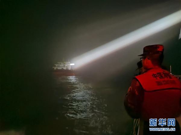 海警執(zhí)法員深夜追緝涉嫌非法運(yùn)砂船舶(2月28日攝)。 新華社發(fā)