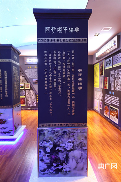 展館以圖片、文字、實物等形式全方位多視角展示中國古代北方草原少數(shù)民族法制沿革傳承歷史,具有展覽、陳列、存儲、教育等多項功能,填補了北方法律文化歷史沿革方面研究的空白。