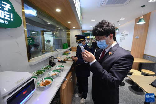 11月17日,湖州市吳興區(qū)人民檢察院的檢察官(前)與吳興區(qū)市場監(jiān)督管理局的工作人員一起開展食品安全公益訴訟專項(xiàng)監(jiān)督行動(dòng)。