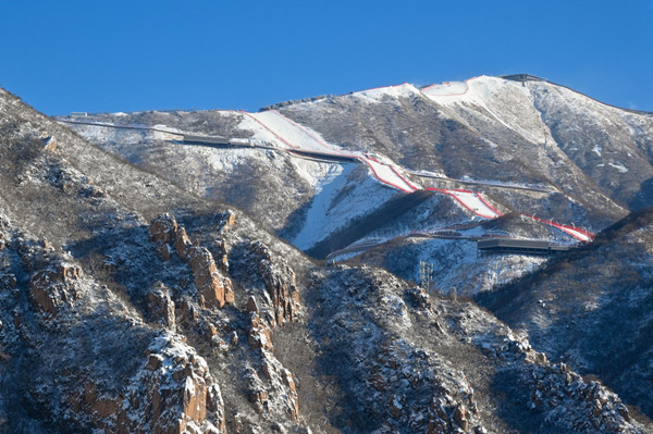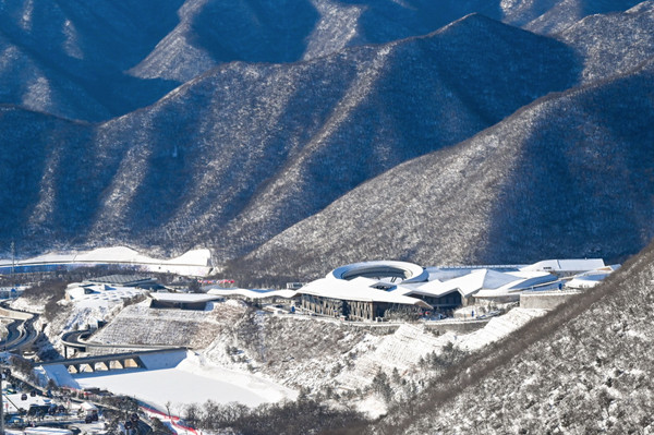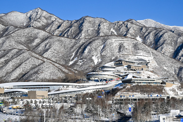 2月14日,雪后的北京延慶國家雪車雪橇中心銀裝素裹,美不勝收。新華社記者 陳益宸 攝
