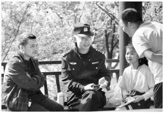 浙江省龍游縣公安局小南海派出所近日以“警務(wù)融治”建設(shè)為載體,創(chuàng)新組建護(hù)村、護(hù)企、護(hù)港、護(hù)林等專業(yè)義警隊伍。圖為林區(qū)警長為群眾開展普法宣傳。