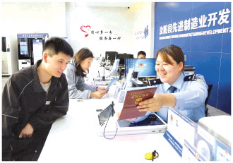近日,河南省汝陽(yáng)縣公安局在先進(jìn)制造業(yè)開發(fā)區(qū)建設(shè)公安政務(wù)服務(wù)大廳并設(shè)立“一窗通辦”窗口,把服務(wù)送到企業(yè)和群眾“家門口”。圖為5月22日,民警在“一窗通辦”窗口為群眾辦理戶籍業(yè)務(wù)。