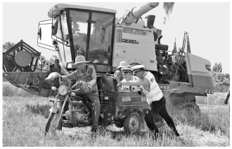 為保障“三夏”期間轄區(qū)道路交通安全暢通,陜西省渭南市澄城縣交警大隊(duì)來(lái)到田間地頭以及公路沿線村莊,加大對(duì)交通安全知識(shí)的宣傳力度,同時(shí)幫助孤寡老人、貧困戶搶收小麥,全力守護(hù)群眾的“糧袋子”。圖為民警協(xié)助村民搶收小麥。