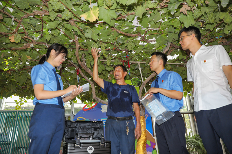 連日來,浙江省紹興市上虞區(qū)人民檢察院公益訴訟部門與相關職能部門聯(lián)合啟動食品安全公益損害風險防控機制,對上虞野藤葡萄等區(qū)域特色農產品現(xiàn)場采摘取樣,并進行農藥殘留及重金屬項目快速檢測,從源頭上把好農產品質量安全關。圖為上虞區(qū)檢察院檢察官近日對野藤葡萄現(xiàn)場取樣。