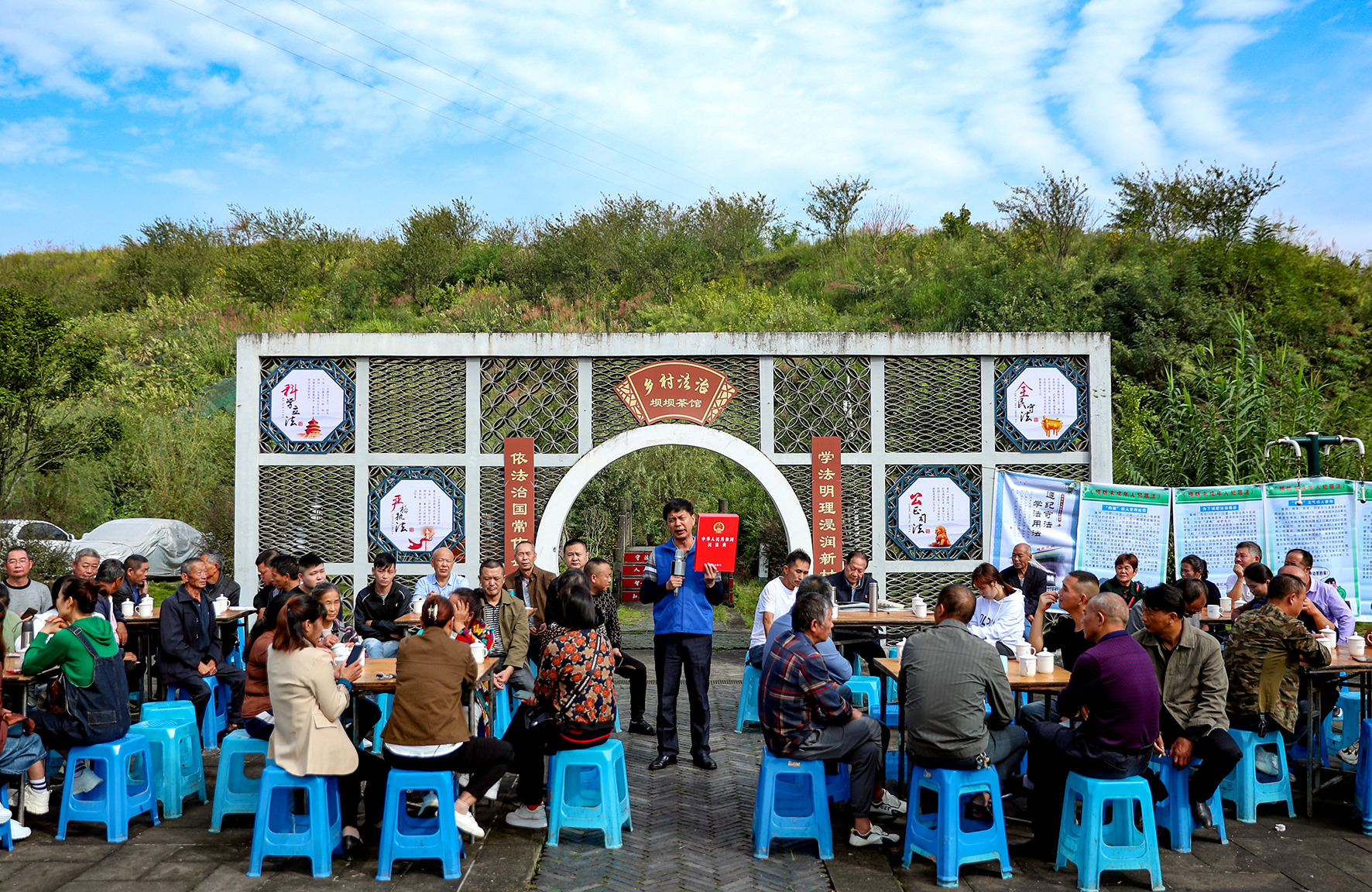 四川省華鎣市不斷拓展法治宣傳陣地,在陽和鎮(zhèn)偏巖子移民新村文體廣場開設“法治壩壩茶館”,通過舉辦講座、文藝表演等形式宣傳法律知識。圖為10月8日,華鎣市司法局工作人員為品茶的群眾宣講民法典。