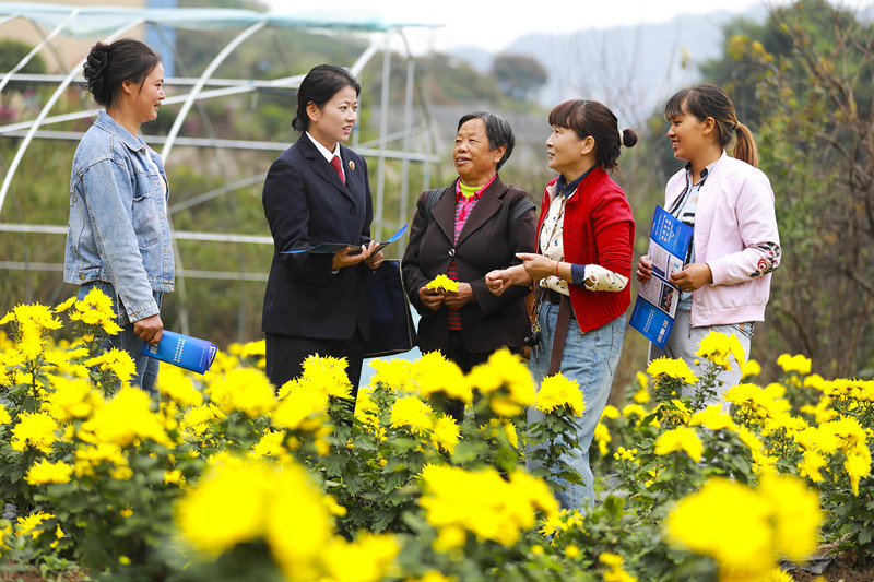 圖為秋收時(shí)節(jié),貴州省黔西市人民檢察院開展“送法進(jìn)產(chǎn)業(yè)園”活動(dòng)。10月25日,檢察官走進(jìn)大關(guān)鎮(zhèn)丘林村菊花產(chǎn)業(yè)園宣傳法律知識(shí)。