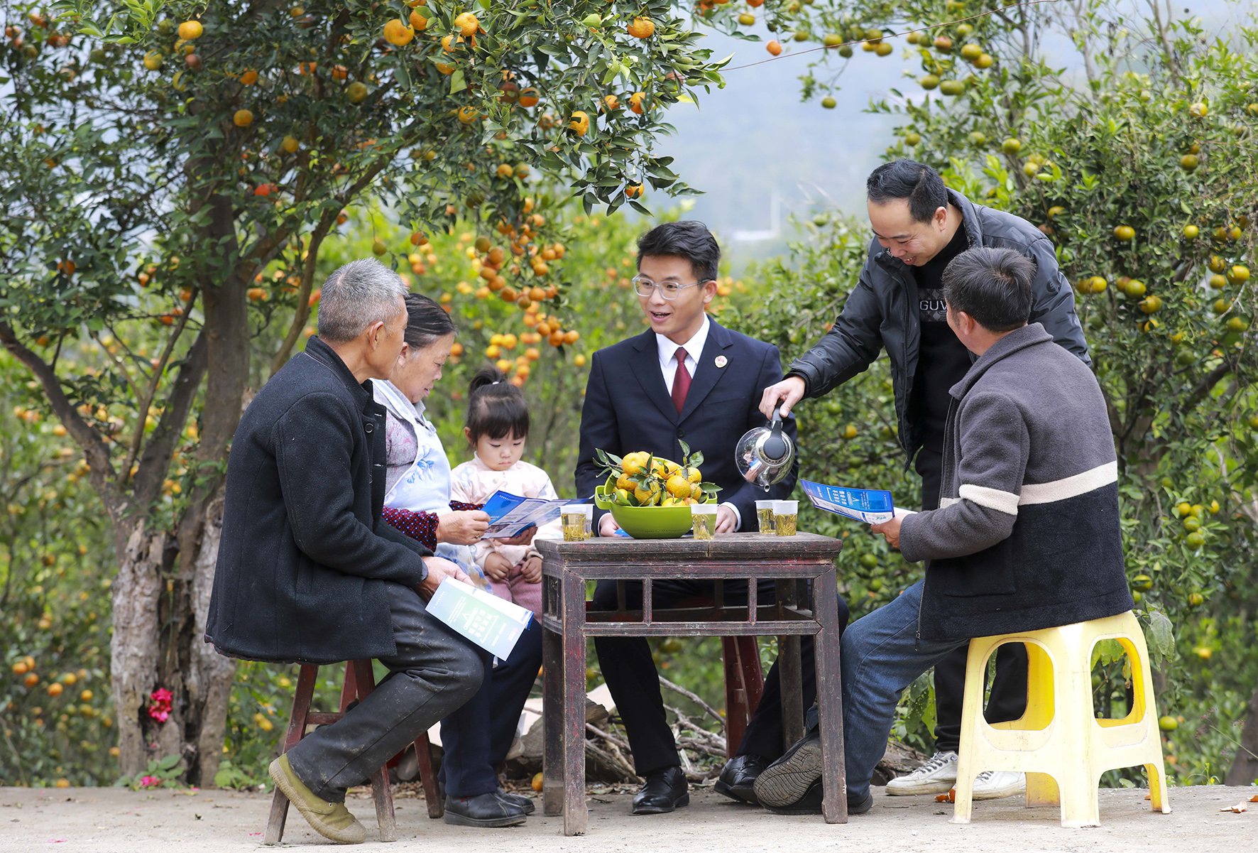 近日,貴州省黔西市人民檢察院開展“送法進(jìn)村助力鄉(xiāng)村振興”活動(dòng),檢察干警走進(jìn)該市素樸鎮(zhèn)索風(fēng)村農(nóng)家院子和果樹林,通過發(fā)放宣傳冊、現(xiàn)場解答、釋法說理等方式,開展防范電詐、交通安全、環(huán)境保護(hù)等相關(guān)內(nèi)容的宣傳,把法律法規(guī)送到農(nóng)戶家門口。圖為檢察干警在索風(fēng)村農(nóng)家院子給農(nóng)戶講解反詐知識。