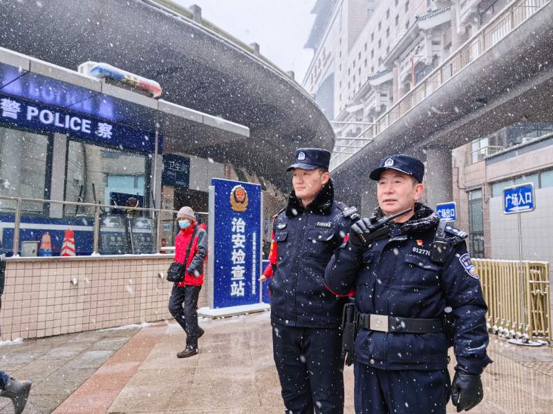 12月13日,北京出現(xiàn)強(qiáng)降雪天氣,北京鐵路公安處組織管內(nèi)車站派出所加強(qiáng)站內(nèi)客流疏導(dǎo)和秩序維護(hù)工作,并部署鐵路沿線派出所加強(qiáng)巡邏巡視,排除安全隱患。圖為民警在北京西站維護(hù)秩序。