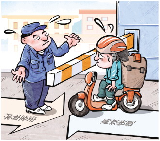近年來(lái),人們?cè)谙硎芡赓u、快遞便捷服務(wù)的同時(shí),外賣員、快遞員因能否進(jìn)小區(qū)、騎電動(dòng)車橫沖直撞、亂停放等問(wèn)題屢屢與小區(qū)保安發(fā)生沖突。
