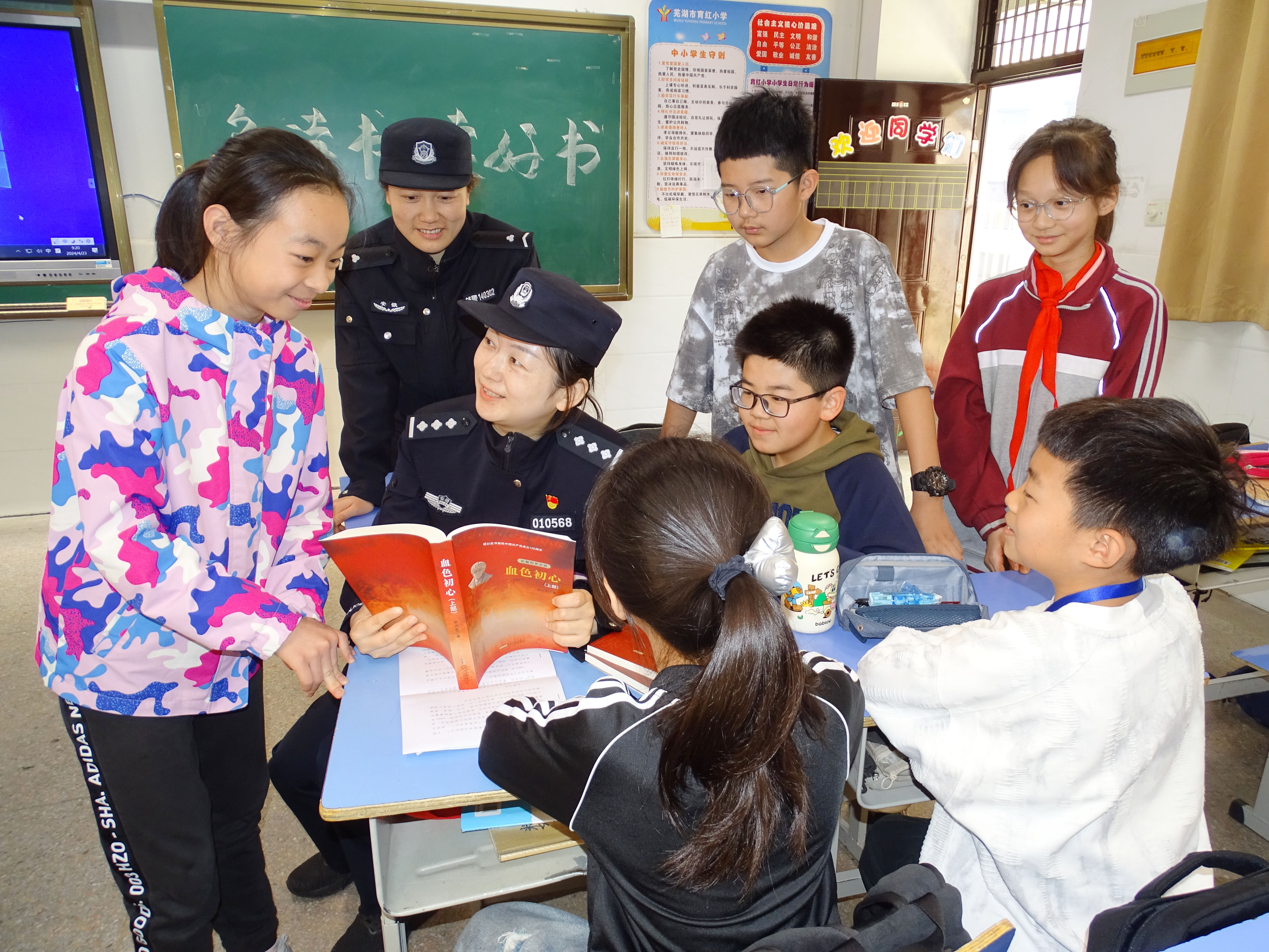 4月23日,安徽省蕪湖市公安局鏡湖分局濱江派出所組織民警來到轄區(qū)育紅小學開展世界讀書日主題宣傳教育活動,引導(dǎo)孩子們讀好書、勤讀書,從書中汲取養(yǎng)分。圖為民警與孩子們同讀一本書。