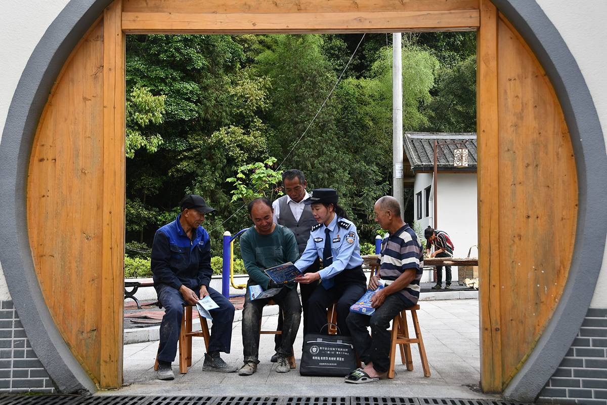 近日,福建省壽寧縣公安局下黨派出所民警走進(jìn)村居開展防范經(jīng)濟(jì)犯罪宣傳,提升村民安全防范意識。圖為民警向村民介紹防范經(jīng)濟(jì)犯罪知識。
