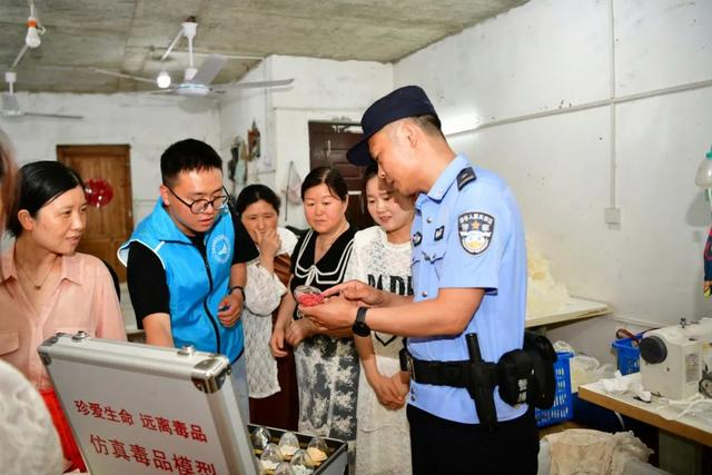 近日,安徽省阜南縣公安局水上派出所聯(lián)合鹿城鎮(zhèn)駱寨社區(qū)文明實(shí)踐站,開展“遠(yuǎn)離毒品、幸福家園”為主題的禁毒宣傳活動(dòng)。圖為民警與禁毒工作人員向企業(yè)員工講解識(shí)毒、防毒知識(shí)。