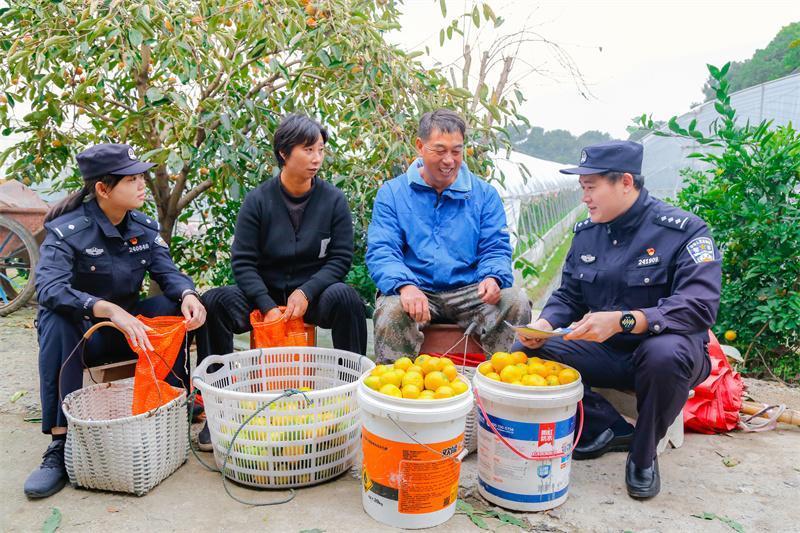 近日,江蘇省蘇州市吳江區(qū)橫扇街道新湖村迎來(lái)柑橘豐收,吳江區(qū)公安局橫扇派出所民警深入轄區(qū)柑橘種植基地開(kāi)展走訪宣傳。圖為民警向種植戶開(kāi)展反詐宣傳。
