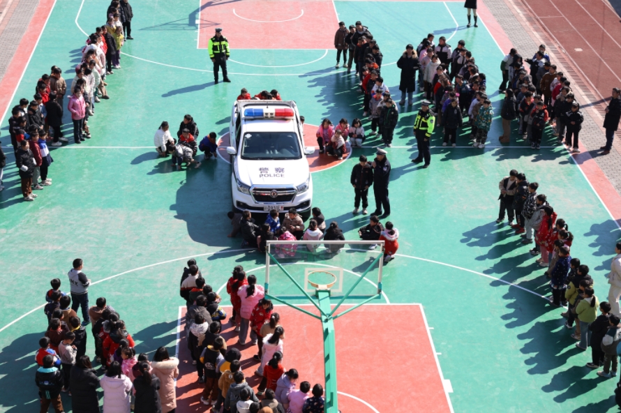 為進(jìn)一步筑牢寒假期間交通安全防線(xiàn),江西省遂川縣公安局交警大隊(duì)近日組織民警走進(jìn)轄區(qū)中小學(xué)校,開(kāi)展交通安全宣傳活動(dòng)。圖為1月10日,民警在遂川縣大汾鎮(zhèn)寨溪小學(xué)向?qū)W生講解機(jī)動(dòng)車(chē)駕駛盲區(qū)知識(shí)。