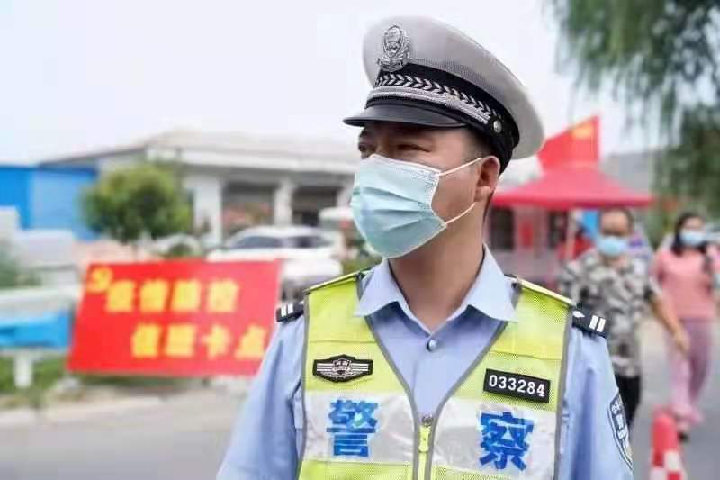 這已經(jīng)是他連續(xù)奮戰(zhàn)在疫情防控卡點(diǎn)的第七天,三伏烈日,汗流浹背,警服濕了干,干了又濕,口罩的形狀烙在了黝黑的臉龐,沙啞的嗓子,不停地往嘴里放潤喉片。