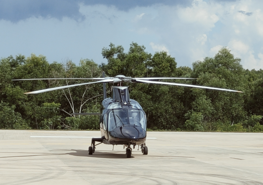 8月18日下午,記者在海口市的金林??诩鬃油ㄓ脵C(jī)場(chǎng),看到一架從墨西哥購(gòu)進(jìn)的AW109E直升機(jī)運(yùn)抵此地,并完成安裝調(diào)試、交付運(yùn)營(yíng)。