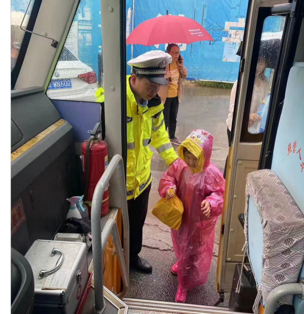 5月25日起,河南省鄭州市連續(xù)幾日陰雨天。為確保惡劣天氣下校車的出行安全,鄭州交警五支隊(duì)四大隊(duì)大隊(duì)長程育龍?zhí)崆皽贤ㄝ爡^(qū)金水區(qū)吉貝爾幼兒園,詳細(xì)了解學(xué)校的具體位置、上學(xué)時(shí)間、班級(jí)數(shù)量、學(xué)生人數(shù)、校車情況等信息,挑選出公路(街道)沿線行駛路線長的一部校車“跟車護(hù)送”,全力保障學(xué)生出行安全。