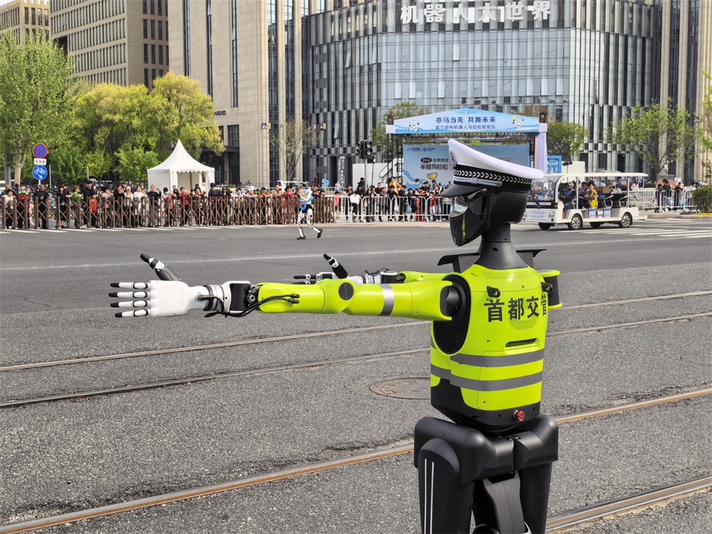 交警機(jī)器人亮相指揮北京亦莊馬拉松