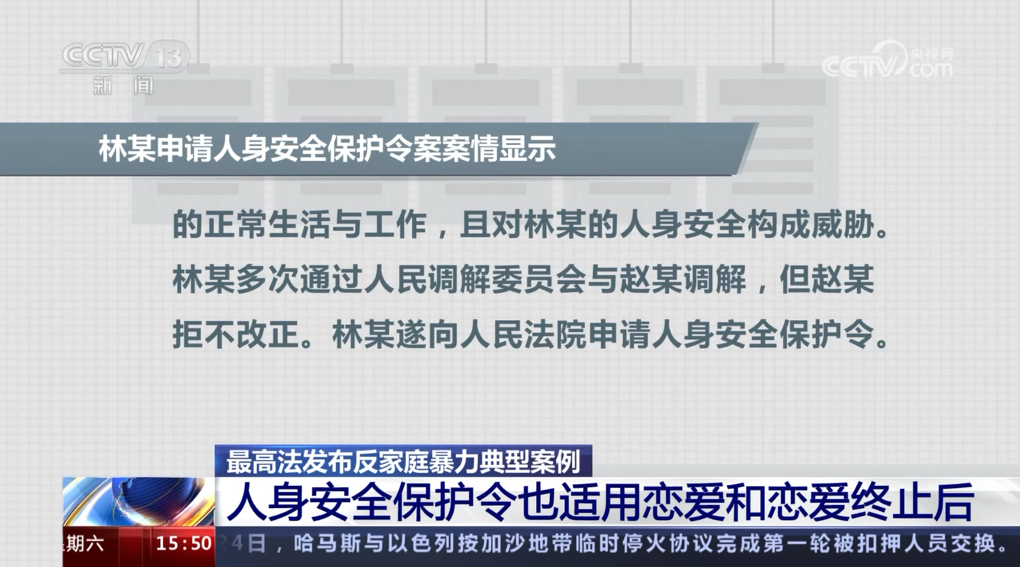 最高法發(fā)布反家庭暴力典型案例 人身安全保護令也適用戀愛和戀愛終止后