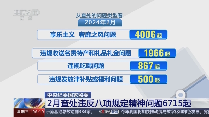 中央紀(jì)委國家監(jiān)委 2月查處違反八項(xiàng)規(guī)定精神問題6715起