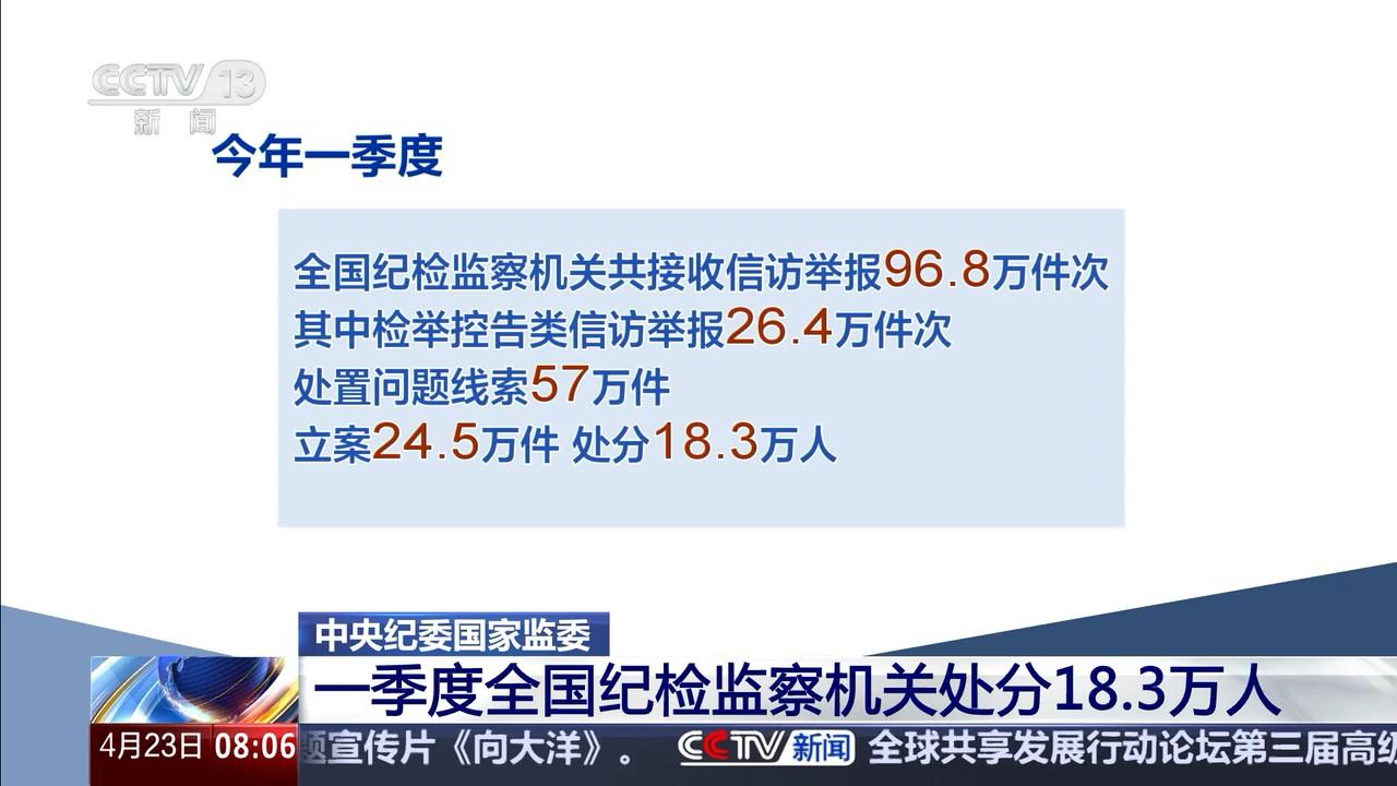 中央紀委國家監(jiān)委 一季度全國紀檢監(jiān)察機關處分18.3萬人