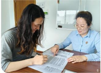 6月5日,江蘇省蘇州市蘇州公證處公證員為“出海”企業(yè)辦理涉外公證事項(xiàng)。 曹陳純 攝