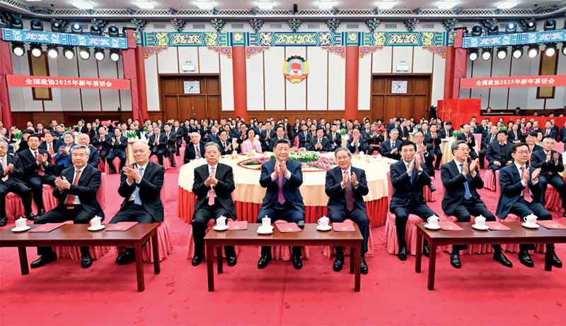 2024年12月31日,全國(guó)政協(xié)在北京舉行新年茶話會(huì)。黨和國(guó)家領(lǐng)導(dǎo)人習(xí)近平、李強(qiáng)、趙樂(lè)際、王滬寧、蔡奇、丁薛祥、李希、韓正出席茶話會(huì)并觀看演出。 新華社記者 謝環(huán)馳/攝