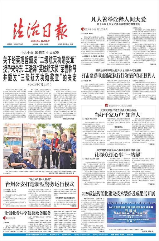臺(tái)州市副市長、公安局局長馬堅(jiān)斌告訴《法治日報(bào)》記者,近年來,臺(tái)州公安堅(jiān)決扛起“防風(fēng)險(xiǎn)、保安全、護(hù)穩(wěn)定、促發(fā)展”主責(zé)主業(yè),緊緊圍繞公安工作現(xiàn)代化主題主線,以“共富、共治、生態(tài)”三大警務(wù)建設(shè)為主抓手,大力推進(jìn)改革創(chuàng)優(yōu)、重點(diǎn)攻堅(jiān),不斷豐富提升公安機(jī)關(guān)新質(zhì)戰(zhàn)斗力,全力支撐和服務(wù)臺(tái)州奮進(jìn)“三高三新”(推動(dòng)高質(zhì)量發(fā)展、打造高能級(jí)城市、促進(jìn)高水平共富,在現(xiàn)代化建設(shè)新征程上再創(chuàng)新輝煌再上新臺(tái)階)邁出堅(jiān)實(shí)步伐。