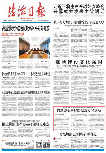 《法治日報》記者了解到,“十四五”以來,湖北政法機(jī)關(guān)認(rèn)真落實(shí)總體國家安全觀,全力以赴防風(fēng)險、保安全、護(hù)穩(wěn)定、促發(fā)展,堅定不移抓法治、優(yōu)環(huán)境、促發(fā)展,為全省加快建成中部崛起重要戰(zhàn)略支點(diǎn)提供了有力安全保障和法治支撐。
