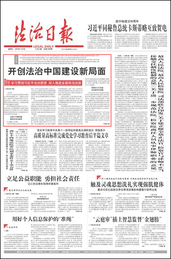 在中央全面依法治國工作會議召開一周年之際,本報從11月3日起開設“學習貫徹習近平法治思想 深入推進全面依法治國”專欄,全方位多維度總結推介各地各部門深入學習貫徹習近平法治思想,學思踐悟,指導實踐,推進全面依法治國上臺階的具體舉措、生動實踐和成功經驗,發(fā)揮法治在國家治理體系和治理能力現代化中的積極作用,不斷開創(chuàng)法治中國建設新局面。敬請關注。