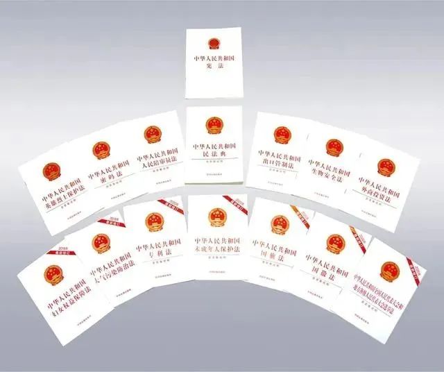 圖為十三屆全國人大及其常委會制定或修訂的部分法律單行本。