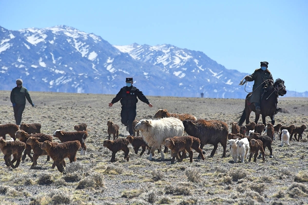 為全力做好轄區(qū)牧民牲畜安全轉(zhuǎn)場(chǎng),4月11日,新疆昌吉邊境管理支隊(duì)庫(kù)甫邊境派出所組織民警組成轉(zhuǎn)場(chǎng)護(hù)牧隊(duì),攜帶日常生活用品和常備使用藥品,及時(shí)解決牧民實(shí)際困難,全程跟進(jìn)安全護(hù)送,幫助牧民搭建帳篷,確保春季牧民安全轉(zhuǎn)場(chǎng)。