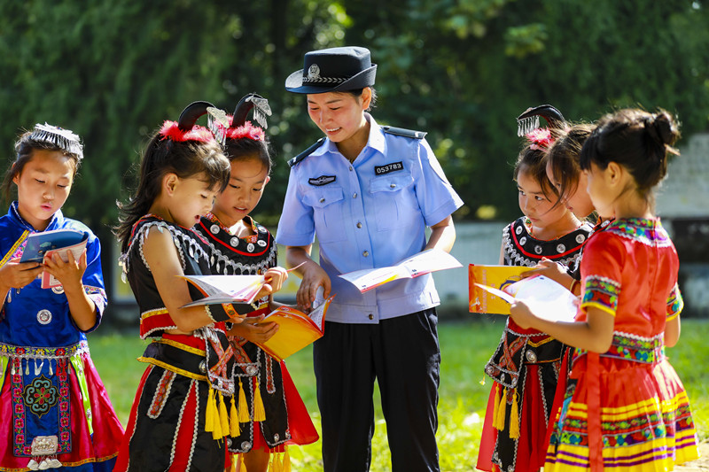 8月17日,貴州省黔西市公安局永燊派出所民輔警來到茨落村苗寨,開展“護(hù)苗行動助成長”宣傳活動,讓孩子們在輕松愉快的氛圍中接受法治教育,增強(qiáng)法治意識。