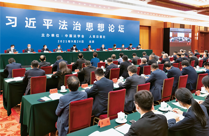 2021年9月26日,由中國(guó)法學(xué)會(huì)和人民日?qǐng)?bào)社聯(lián)合主辦的習(xí)近平法治思想論壇在京舉行。論壇以“堅(jiān)定不移走中國(guó)特色社會(huì)主義法治道路,為全面建成社會(huì)主義現(xiàn)代化強(qiáng)國(guó)而努力奮斗”為主題,旨在推動(dòng)社會(huì)各界特別是法學(xué)法律界認(rèn)真學(xué)習(xí)、深入研究、扎實(shí)宣傳習(xí)近平法治思想,自覺(jué)用習(xí)近平法治思想武裝頭腦、指導(dǎo)實(shí)踐、推動(dòng)工作,譜寫(xiě)新時(shí)代全面依法治國(guó)新篇章?! 睹裰髋c法制》社記者 戎珊/攝