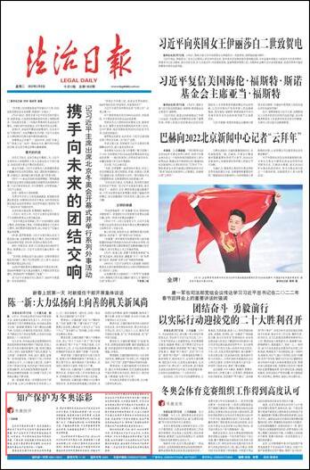 綜合運(yùn)用法律、行政、技術(shù)、社會治理等手段,對涉奧知識產(chǎn)權(quán)予以全方位、立體化的保護(hù),不僅為冬奧盛會的舉辦營造了良好氛圍,也切實(shí)增強(qiáng)了全社會保護(hù)知識產(chǎn)權(quán)的意識和自覺性。相信強(qiáng)有力的知識產(chǎn)權(quán)保護(hù)舉措,一定會為北京冬奧會的成功舉辦增色添彩。