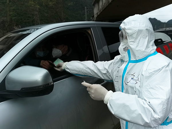 “緊急集合!”2月10日凌晨,剛剛執(zhí)勤返回的該支隊民警張敬鎏突然接到了前往都安鄉(xiāng)協(xié)助轉(zhuǎn)運密接人員的工作指令。張敬鎏迅速穿好防護裝備,主動申請擔(dān)負(fù)轉(zhuǎn)運車輛駕駛?cè)蝿?wù)。山路崎嶇濕滑,四周漆黑一片,轉(zhuǎn)運車輛只能緩慢行進。凌晨3時許,轉(zhuǎn)運小組才到達其中一名密接人員黃先生所在的都安鄉(xiāng)坡那村。