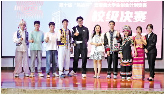 圖為今年5月31日,鄧鵬飛(左5)帶領(lǐng)同學(xué)們參加第十屆“挑戰(zhàn)杯”云南省大學(xué)生創(chuàng)業(yè)計(jì)劃競(jìng)賽。受訪者供圖